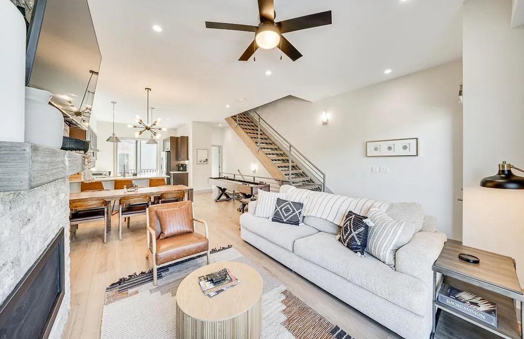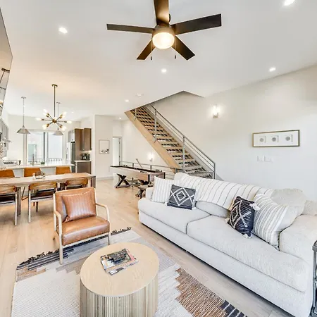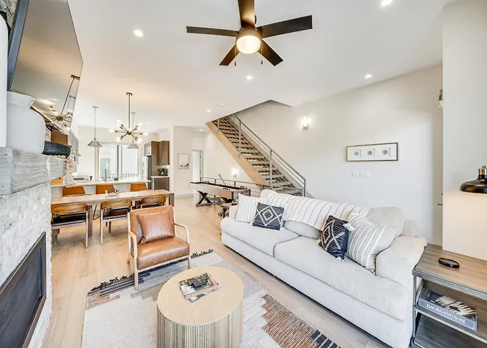 La Rooftop Mtn View And Hot Tub Silverthorne Home! dispone de un lavaplatos, una nevera y un horno en la cocina bien equipada para cocinar uno mismo. Los huéspedes tienen la opción de comer en el restaurante Pho Noodle Cafe, que está a tan solo 8 minutos a pie. El aeropuerto Regional del Condado de Eagle se encuentra a 110 km, mientras que la estación de autobuses Recreation Center está justo al lado de la villa.